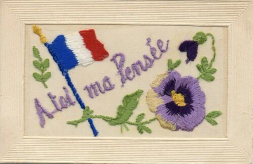 Title (ebay affiliate link): A TOI MA PENSEE: FRENCH FLAG: WW1 PATRIOTIC EMBROIDERED SILK POSTCARD