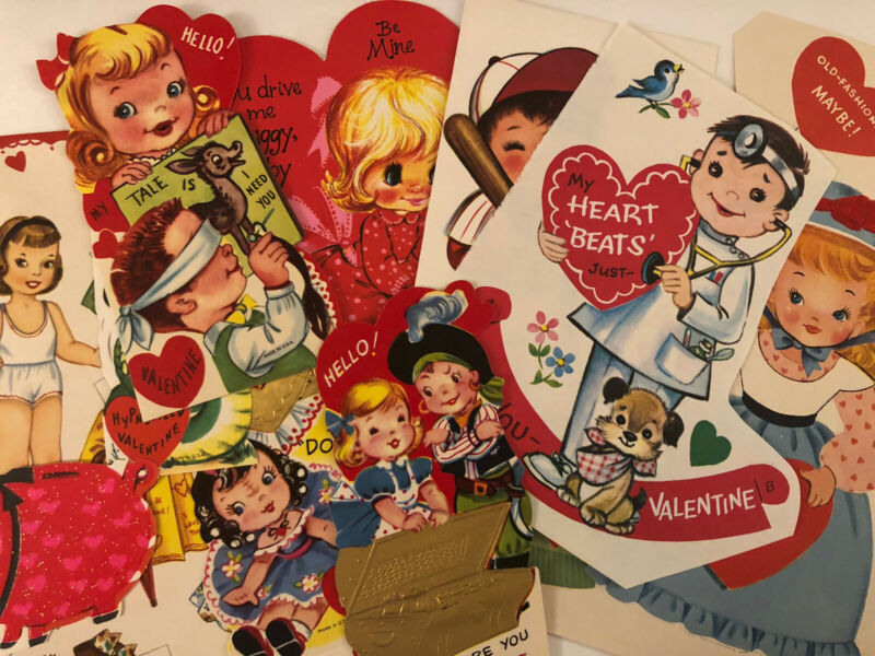 Title (ebay affiliate link): #L UNUSED Lot Vintage Valentine Card GIRLS BOYS ANIMALS & Paper Doll
