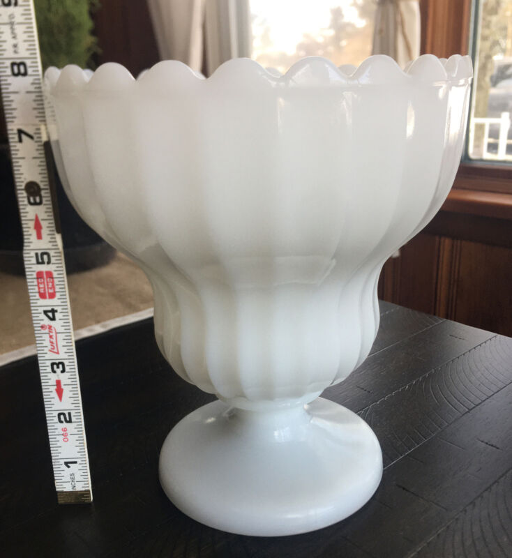 Vintage Ribbed Milk Glass Planter Urn Scalloped Edge