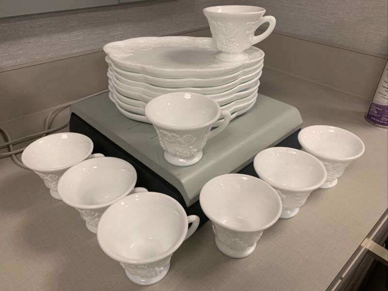 Title (ebay affiliate link): VINTAGE COLONY MILK GLASS 16pc. SNACK PLATE & CUP GRAPE SET, FABULOUS CONDITION!