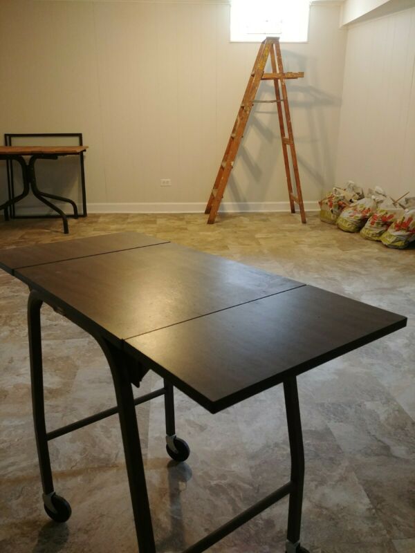 Title (ebay affiliate link): Vintage HASCO Typewriter Stand brown Metal & faux Wood Top Table W/ Drop Leafs