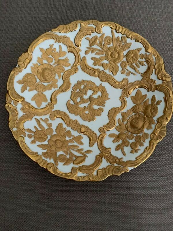 Beautiful Vintage Porcelain Gilt Display Plate Floral Design