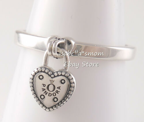 Title (ebay affiliate link): LOVE LOCK Authentic PANDORA Silver PADLOCK HEART LOGO Ring 8.5 196571-58 NEW!