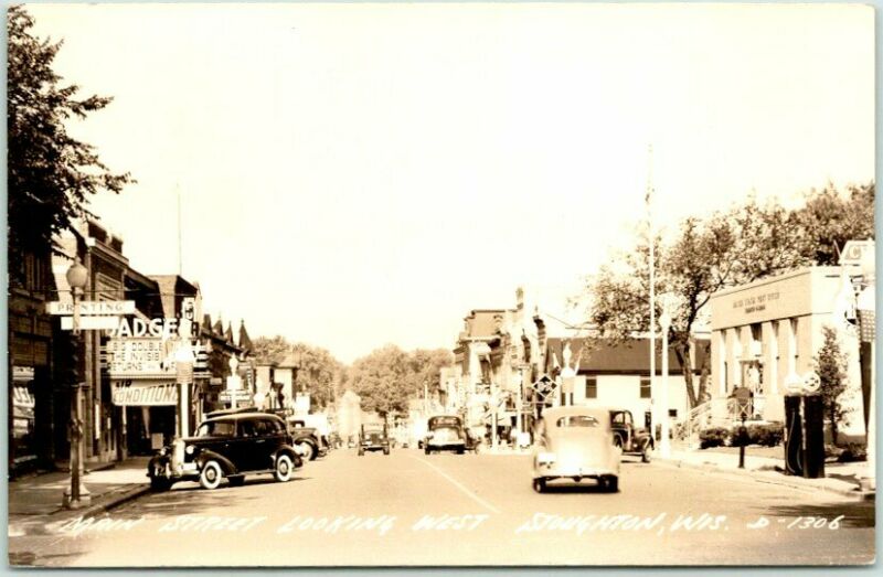 Title (ebay affiliate link): Stoughton, Wisconsin RPPC Real Photo Postcard "MAIN STREET Looking West" c1940s