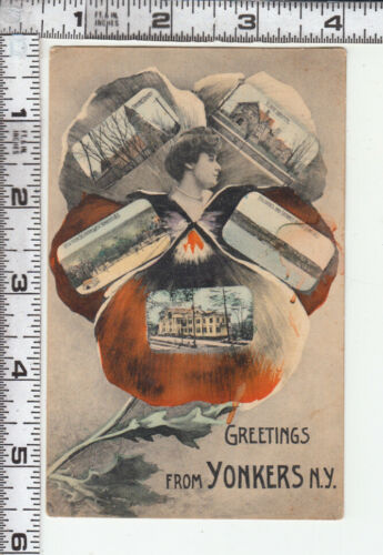 Title (ebay affiliate link): PANSY Flower Motif - "GREETINGS FROM YONKERS N.Y." - FIVE Small Colorful Views