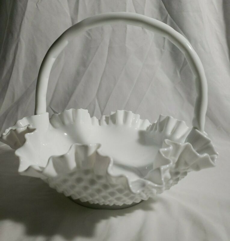 Title (ebay affiliate link): Vintage Fenton White Hobnail Milk Glass Large Handled Bowl