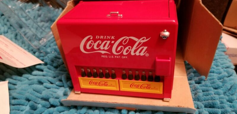 Title (ebay affiliate link): COCA COLA BOTTLE MUSICAL COIN COOLER BANK COKE MUSIC Enesco 1997 Die Cast