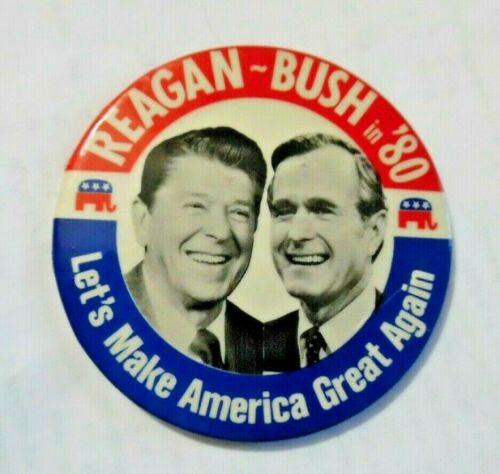 Title (ebay affiliate link): Reagan - Bush 1980 Campaign Election Pin LMAGA "Let''s Make America Great Again"