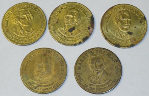 Title (ebay affiliate link): US PRESIDENTS 6 COINS MEDALLIONS WASHINGTON JEFFERSON LINCOLN TRUMAN EISENHOWER