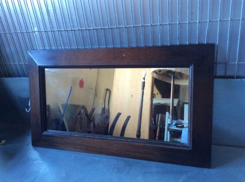 Antique Oak Framed Mirror Cloakroom Hall Mirror 80x46cm Rectangle Oak Mirror V54