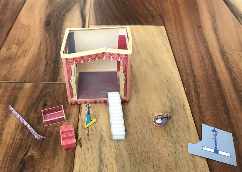 Title (ebay affiliate link): VTG DOLLHOUSE MiNIATURE The Little Theatre Carboard Furniture