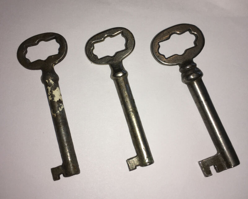 Vintage Antique Key Lot 3 Furniture Lock Skeleton Barrel Cabinet Door Keys
