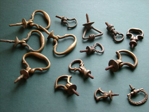 Antique brass drop pendent handles, 14 vintage cabinet drop handles.