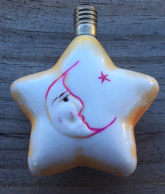 Title (ebay affiliate link): Vintage Star With Moon Figural Milk Glass Christmas C6 Light Bulb NonWorking