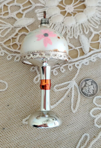 Title (ebay affiliate link): Antique Hand blown Glass HP Pink Flowers Silver Lamp Germany Christmas Ornament