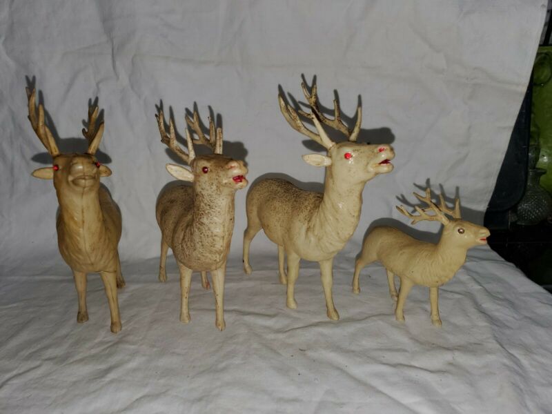 Title (ebay affiliate link): 3 Lg/1 Sm Vintage Celluloid Standing Reindeer Rhinestone Eye Japan