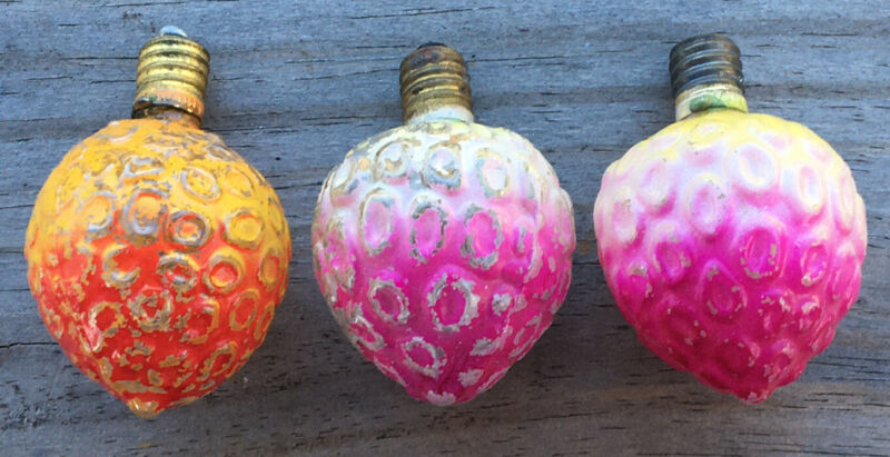 Title (ebay affiliate link): Trio Vintage Strawberry Figural Clear Glass Christmas C6 Light Bulbs Working