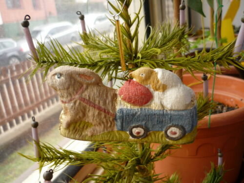 Title (ebay affiliate link): VTG.PAPIER RABBIT AND CHICKEN ON CART CHRISTMAS TREE ORNAMENT