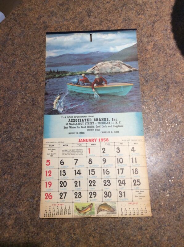 Title (ebay affiliate link): Vintage 1958 Wall Calender From Assiciated Brands In Brooklyn With Fishing Tips.