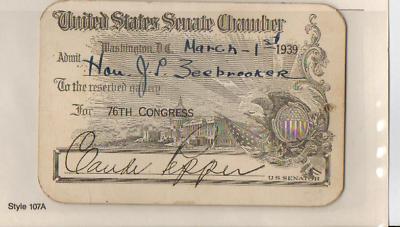 Title (ebay affiliate link): U.S. Senate Chamber Pass signed by Claude Pepper