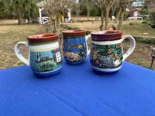 3 Vintage Otagiri Japan Stoneware Mug Sewing Machine Quilt General Store Home