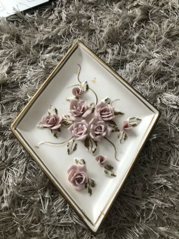 Vintage Lefton China Hand Painted Flower Wall Hanger Plaque Porcelain