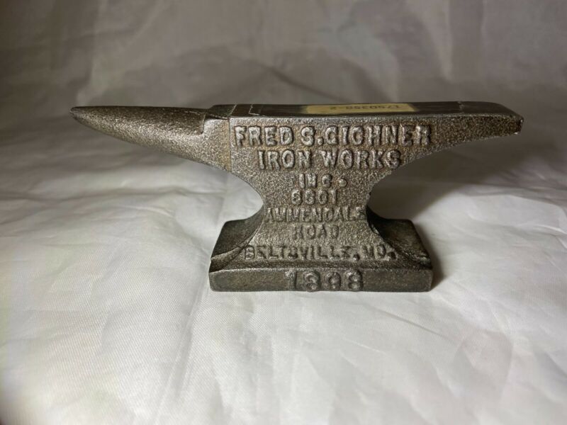 Title (ebay affiliate link): 1898 Beltsville, MD Advertising Fred S. Cichner IRON WORKS Miniature Iron ANVIL