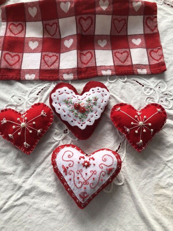 Title (ebay affiliate link): Hand Made Valentine Hearts Bowl Filler Ornament Lot Beaded