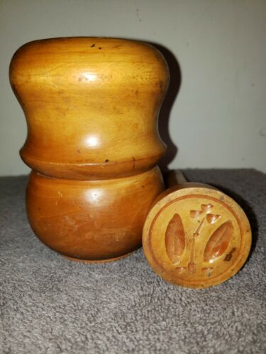 Title (ebay affiliate link): Vintage Wooden Butter Mold, w/Hard to Find Carved 2 Leaf & Stem Flower Design