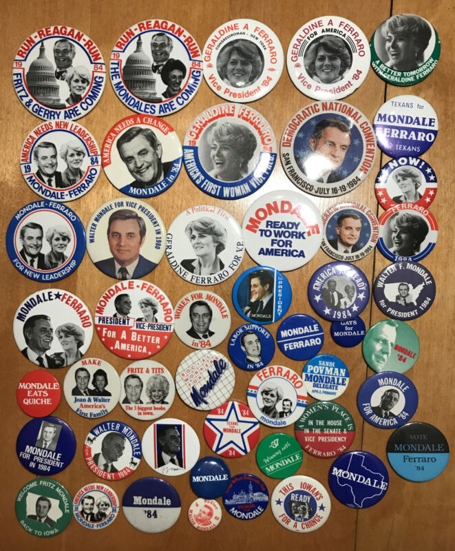 Title (ebay affiliate link): Lot 49 Vintage Buttons | Walter Mondale for President 1984 Geraldine Ferraro