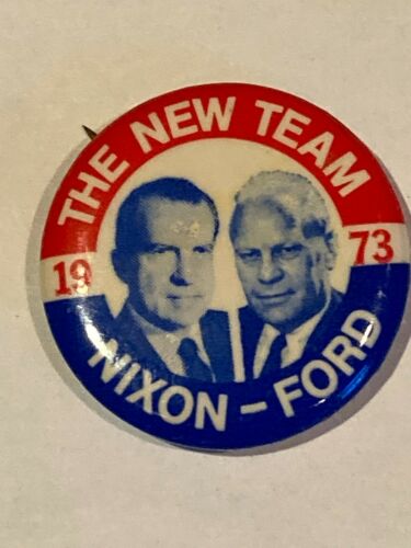 Title (ebay affiliate link): 1973 Richard Nixon/Gerald Ford The New Team Jugate Pinback Button-1 1/4"