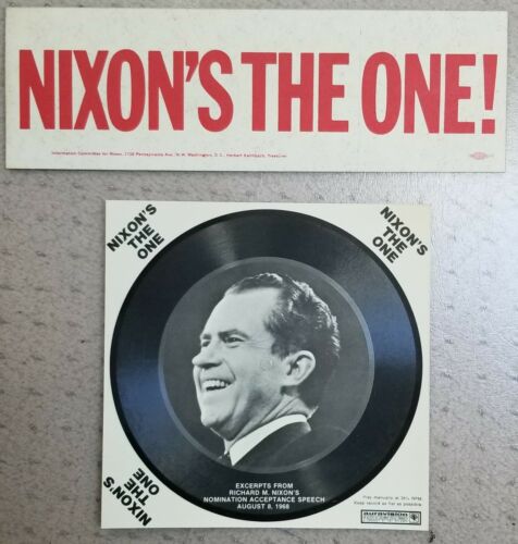 Title (ebay affiliate link): 1968 Presidential Campaign NIXON''S THE ONE flexi disc record & BUMPER STICKER