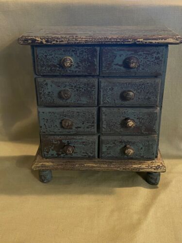 Vintage 8 Drawer Wooden Doll Dresser Greenish Blue 11" X 9"