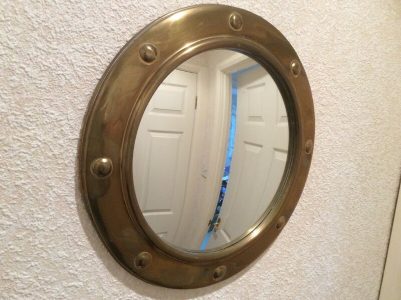 Title (ebay affiliate link): Vintage Mid Century Circular Brass Porthole Wall Mirror Convex Retro Round Glass