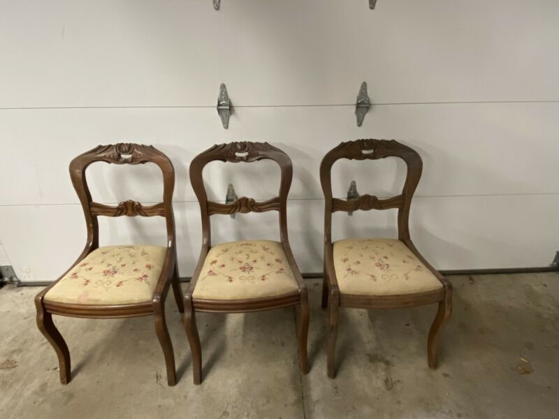 Title (ebay affiliate link): Set Of 3 Carved Victorian Style rose chairs with needlepoint rose seat