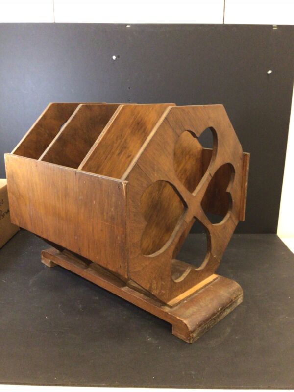 Title (ebay affiliate link): Vintage European Walnut Art Deco Magazine Rack Antique Carved Hearts
