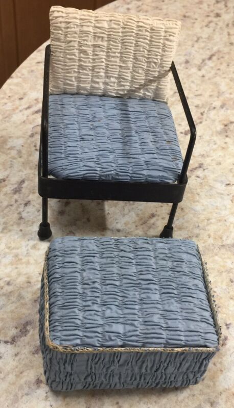 Title (ebay affiliate link): Vintage Doll Furniture Blue Lounge Chair and Foot Stool