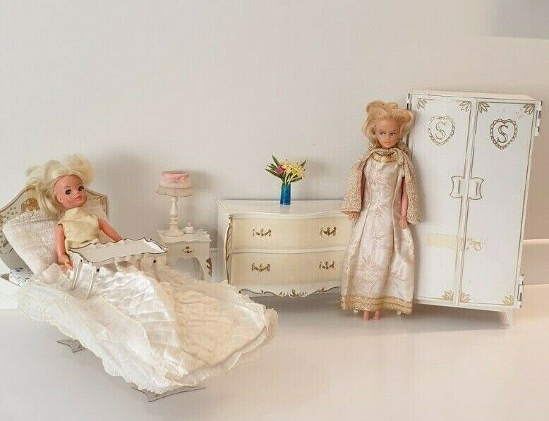 Vintage 1960''s Sindy Bedroom Furniture Bed Wardrobe bedside table chest drawers
