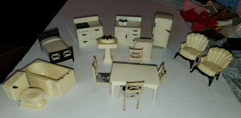 Title (ebay affiliate link): Mixed Lot of 16 Vintage RENWAL White Doll House Furniture