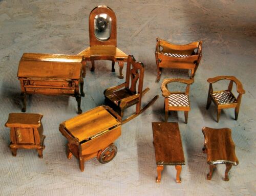 Title (ebay affiliate link): Vintage Wooden Dollhouse Furniture Bed Dresser Vanity Mirror