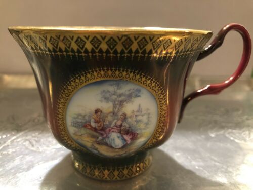 Vintage Warranted 22 Kt. Gold Purple Tea Cup Courting Couple