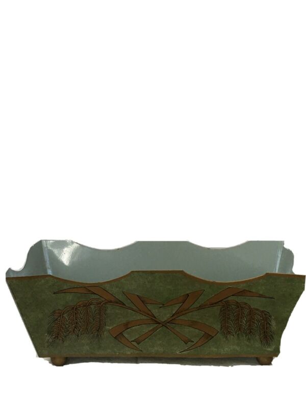 Vintage French Metal Tole Ware Planter Gold Quiver Arrow Decoration Dark Green
