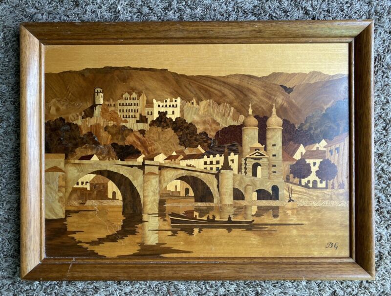 Title (ebay affiliate link): Buchschmid & Gretaux BG Wood Inlay Work Heidelberg Castle Vtg Marquetry Germany