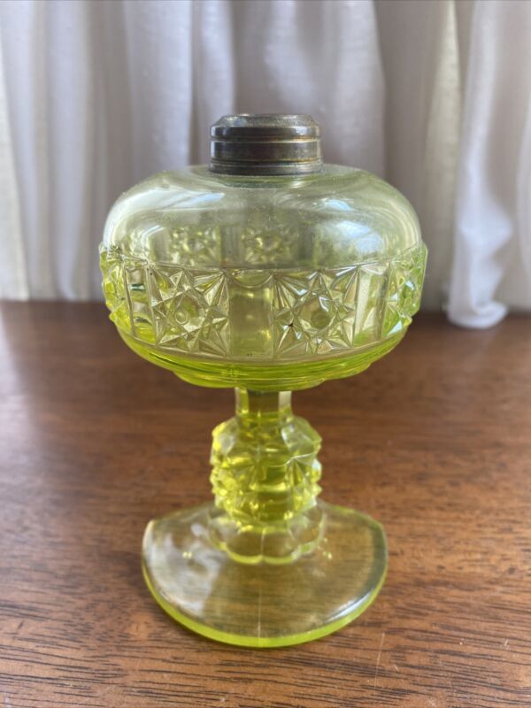 Title (ebay affiliate link): Miniature "Stars And Bars" Glass Oil Lamp Uranium Vaseline Canary Broken Foot