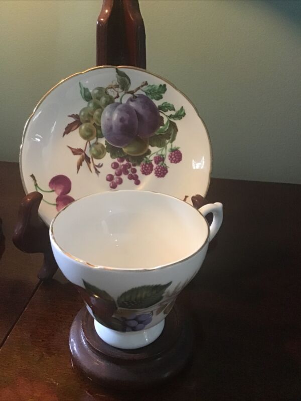 Vintage Tea Cup And Saucer Fine Bone China Regency England Gold Purple Berries