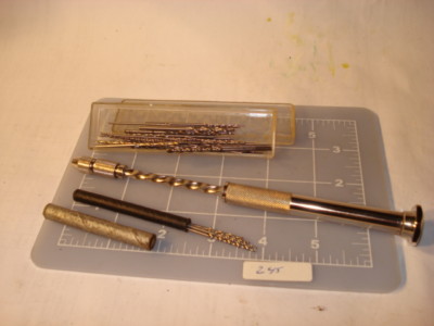ANTIQUE CLOCK REPAIR TOOL, HAND DRILL/BITS (LOT 245)