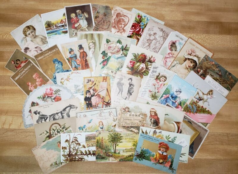 Title (ebay affiliate link): Lot of 38 Victorian Trade Cards Ephemera Advertising Children Animals Flowers L1