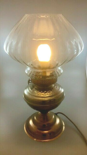 Title (ebay affiliate link): Vintage Oil Lamp with clear, profiled Glass Shade, Converted To Electric: 50cm