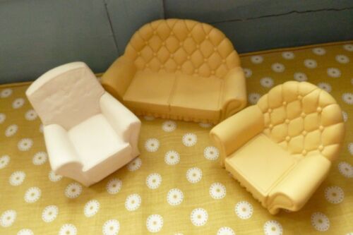 Vintage Sindy Home doll toy settee sofa 2 chairs x 3