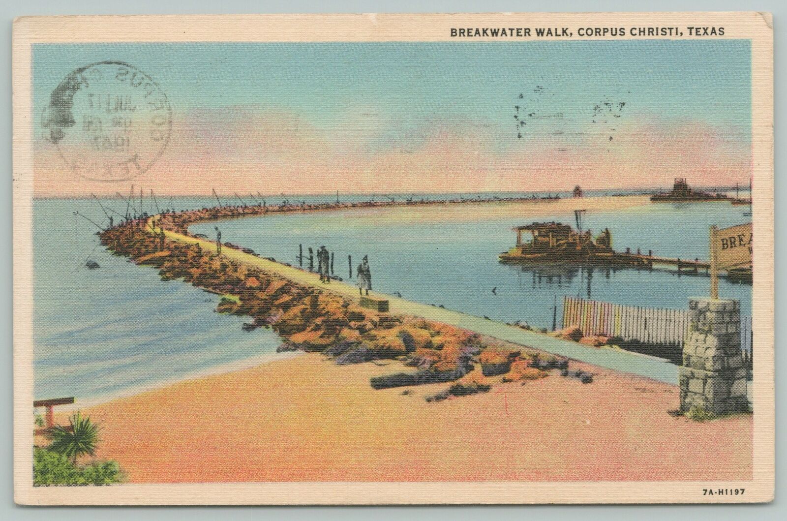 Title (ebay affiliate link): Corpus Christi Texas~Breakwater Walk~1940s Linen Postcard